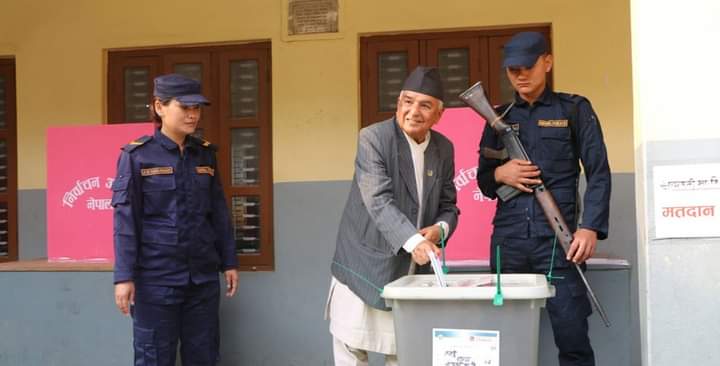 कांग्रेस नेता रामचन्द्र पौडेलद्वारा मतदान ।।।