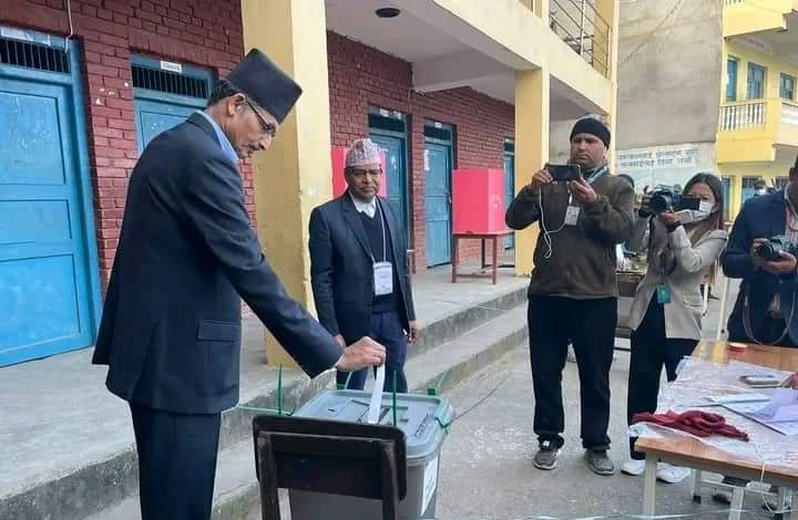निवर्तमान सभामुख सापकोटाले सिन्धुपाल्चोकको सेतीदेवी पञ्चकन्या मावि कुबिन्डे मतदान केन्द्रबाट आइतबार बिहान मतदान गरेका हुन् ।