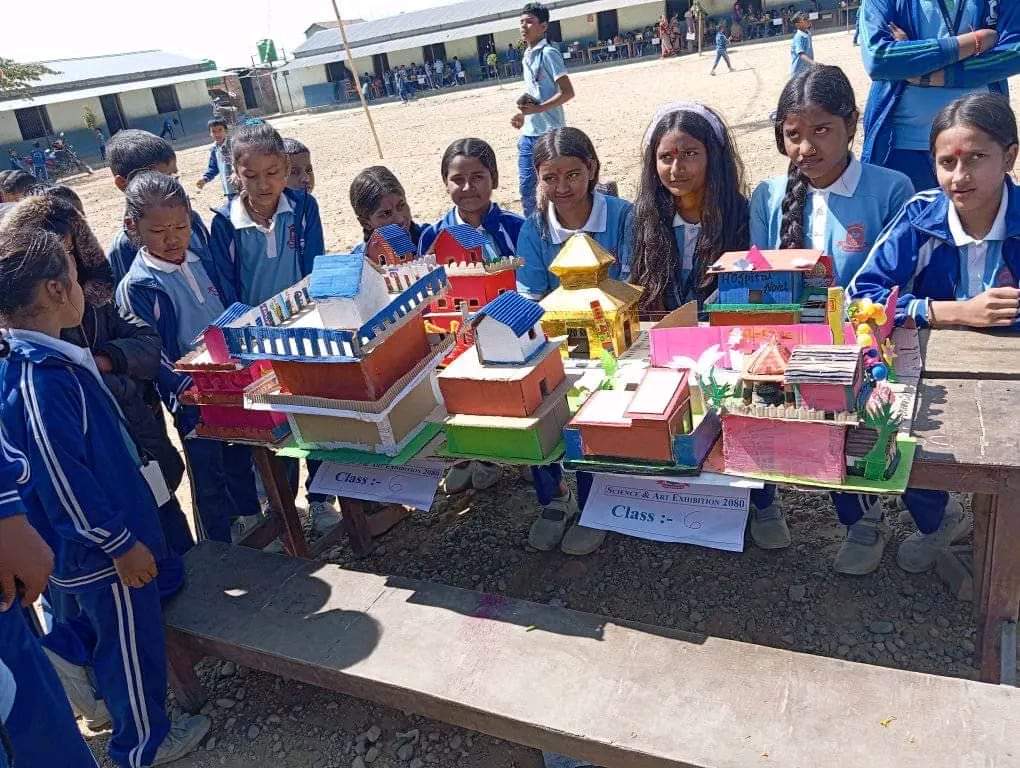 आयोजित प्रदर्शनीमा बालबालिकाद्वारा बनाईएको सामग्रीहरू प्रदर्शनका क्रममा राखिएको थियो ।