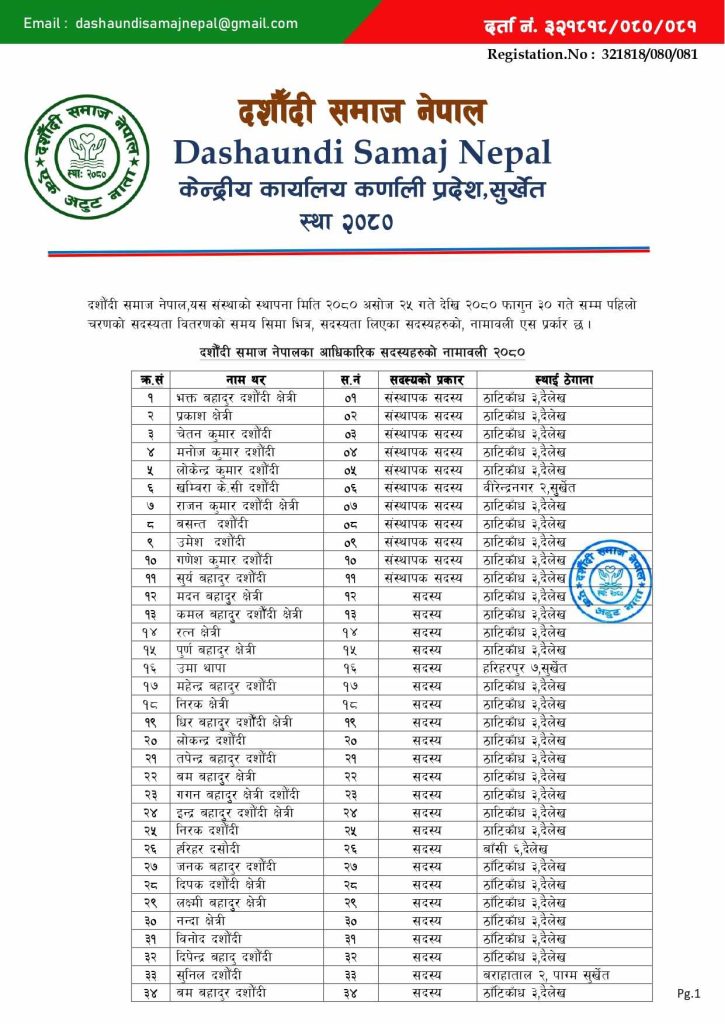 दशाैँदी समाज नेपालले पहिलाे चरणकाे सदस्यता वितरण गत २०८० फागुन अन्तिमबाट राेकेकाे छ।